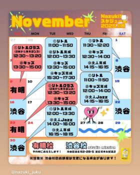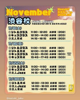 Nazuki塾 スケジュール 2025.11月渋谷校のお知らせ -