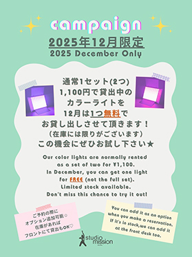 【12月限定キャンペーン】カラーライト1つ無料貸出☆ -