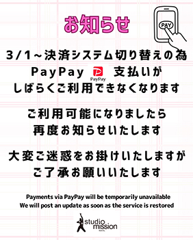 3/1~しばらくの間paypay使用不可 -