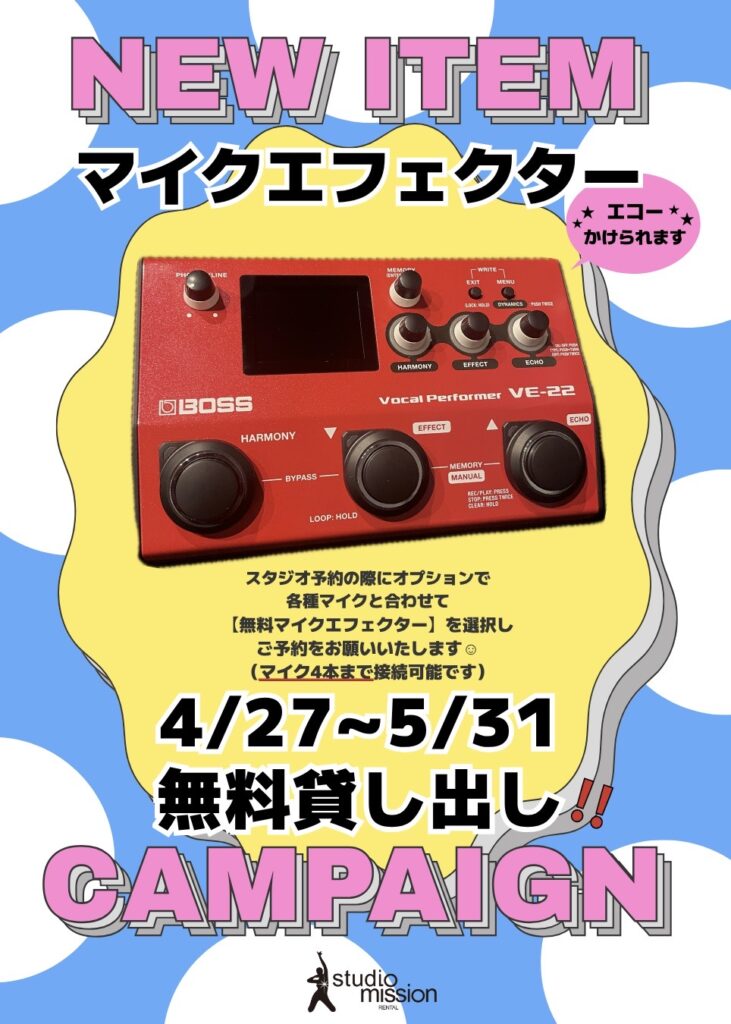 マイク4本まで接続可能なエフェクターレンタル無料キャンペーン始まります!!